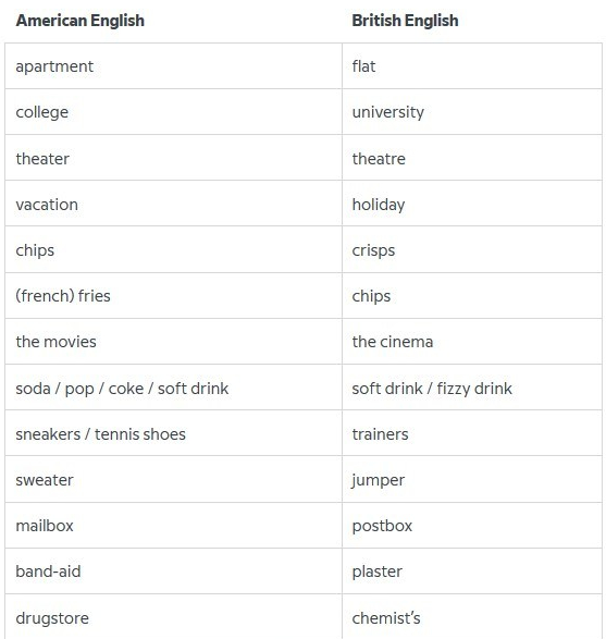 Check out what other words differ from British to American English