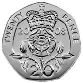 Twenty pence (20p) coins look very similar to 50p coins in that they’re both seven-sided, silver, and have a portrait of Queen Elizabeth II on the front and a piece of the Royal Shield on the back. If you get confused, check out the label («20 pence» or «50 pence») on the reverse of each coin to differentiate them.