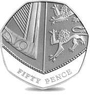 The 50 pence (50p) coin is a seven-sided, silver coin. Since it was first created in 1969, the coin has had Queen Elizabeth’s profile on the front.